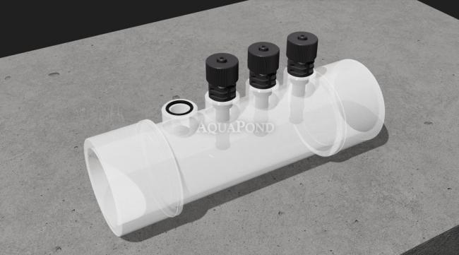 Die Impfstrecke mit vier vorgebohrten G1/4"-Gewinden vereinfacht die Installation erheblich, spart Zeit und senkt die Kosten. Die Impfstrecke hat eine universelle Größe mit d50/63. Impfventile, Entnahmekugelhähne und Thermometer Tauchhülsen können einfach in die vorgebohrten Gewinde eingeschraubt werden. Nicht verwendete Gewinde werden mit einem Stöpsel verschlossen.