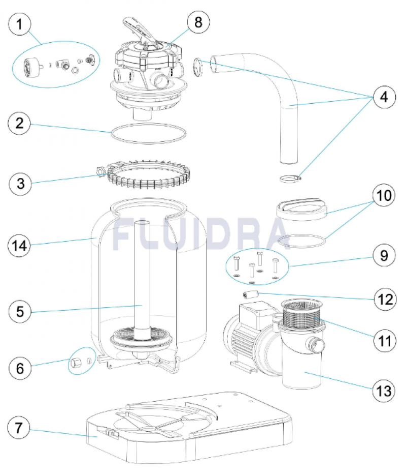 Filterbehälter SkyPool mit oberem Steuerventil TOP und einphasiger selbstansaugender Pumpe P-XPERT mit Grobschmutzfänger, mit transparentem Deckel am Boden. Das SkyPool-Filtergerät kann zur Wasserumwälzung in Pools, Teichen, Spas und Whirlpools verwendet werden. Sandfilter funktionieren nach dem natürlichen Prinzip der Wasserfiltration. Wasser dringt in die abgelagerte Sandschicht ein und fängt kleine Verunreinigungen ein. Auf diese Weise verstopft der Sand natürlich und muss gewaschen werden, wofür das Fünfwegeventil verwendet wird. Durch Drehen des Ventils in die Sandwaschposition ändern wir die Richtung des Wasserflusses und spülen so die abgesetzten Verunreinigungen in den Abfall. Wir können diesen Vorgang über die gesamte Lebensdauer des Sandes wiederholen, was im Vergleich zu anderen Filtersystemen sehr lang ist Methoden. Anschluss an Schläuche mit einem Durchmesser von 38 mm. Im Lieferumfang sind ein Manometer, ein Wasserablass und ein Entlüftungsventil enthalten.