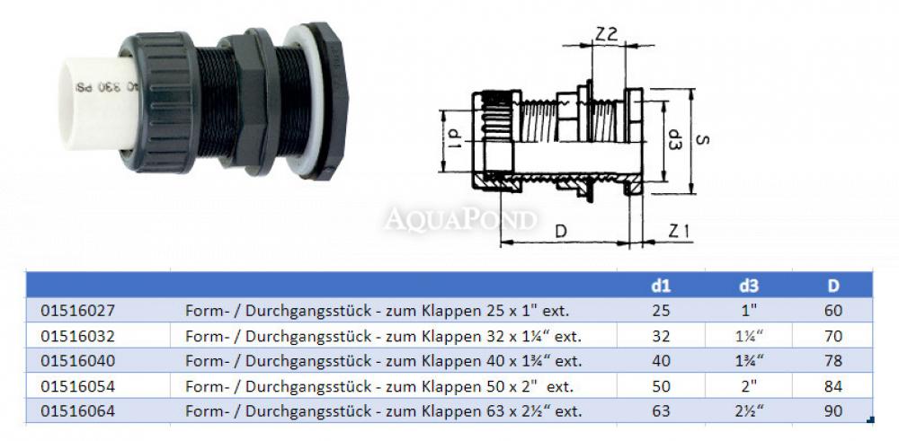 • Form- / Durchgangsstück - zum Klappen 63 x 2 1/2" ext., Verklebung / Außengewinde