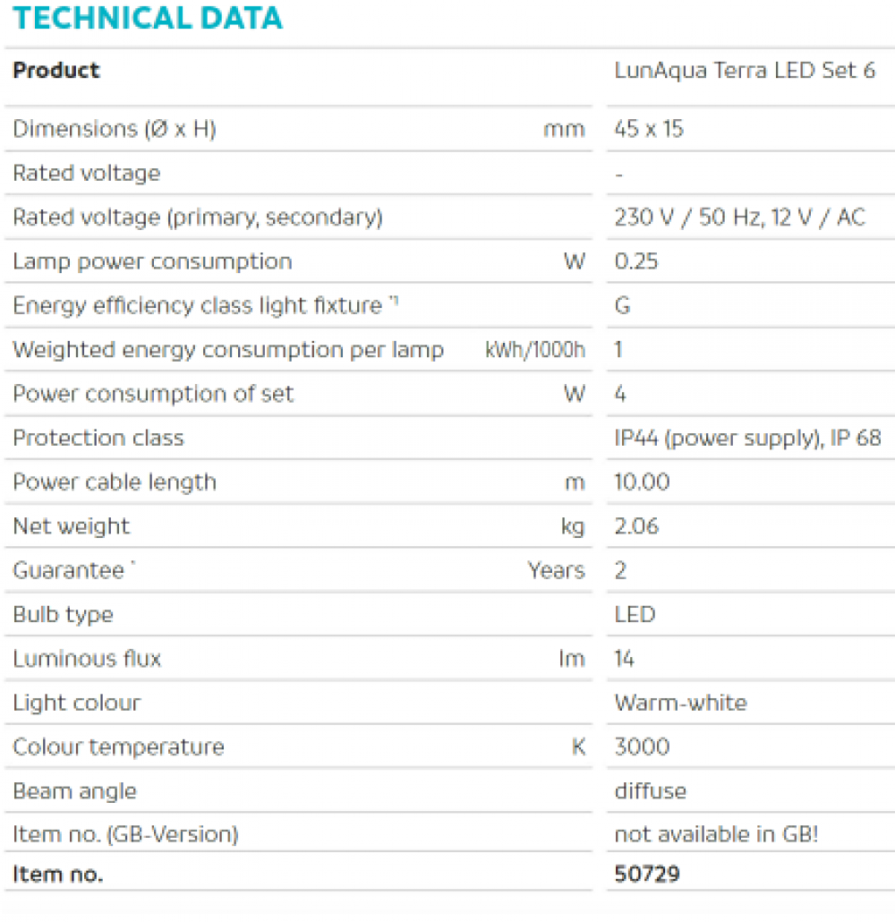 Ersatzteile für Oase LunAqua Terra LED Set 6 - Unterwasserbeleuchtung