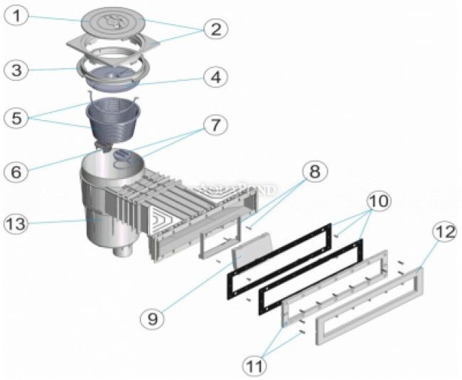 Skimmer (Sammler der Verschmutzung aus dem Wasserspiegel) besorgt den Poolwasserabfluss zu der Filtration. Skimmer ist ein Eimer aus dem Kunststoff oder Edelstahl hergestellt, entweder direkt in der Beckenseite eingebaut oder aufgehängt (bei der überirdischen Varianten). Bestimmte Variante des Skimmer muss laut der Poolkonstruktion ausgewählt werden. Material ABS: hohe Resistenz gegen die Wirkung der Chemie und Wetter. Wir empfehlen die Installation von 1 Skimmer pro 25 m2 . Folienflansch mit Messing Gewindebuchsen,Dichtungssatz, Edelstahl-Gewindeschrauben und Skimmerkorb.