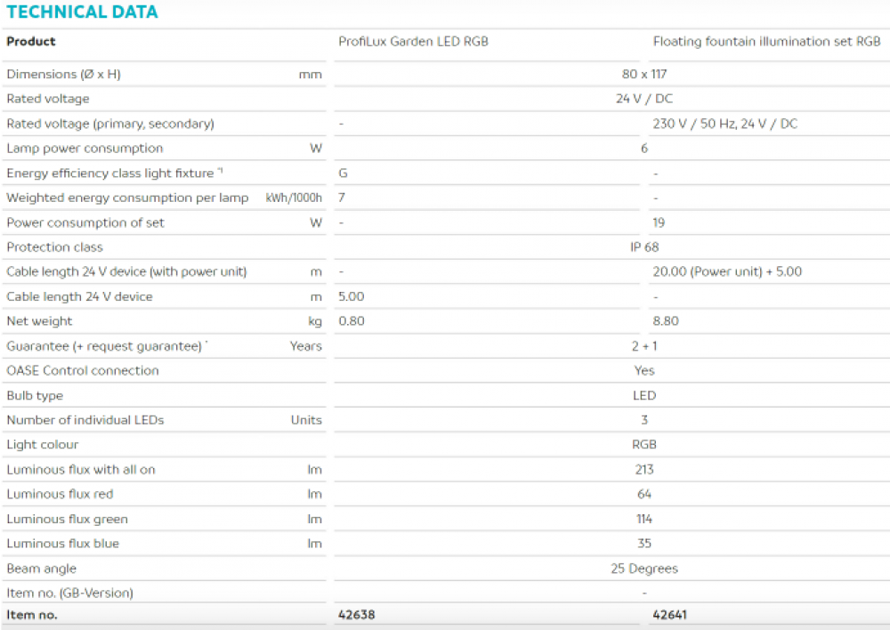 Ersatzteile für Oase Schwimmfontänen - Beleuchtungsset RGB
