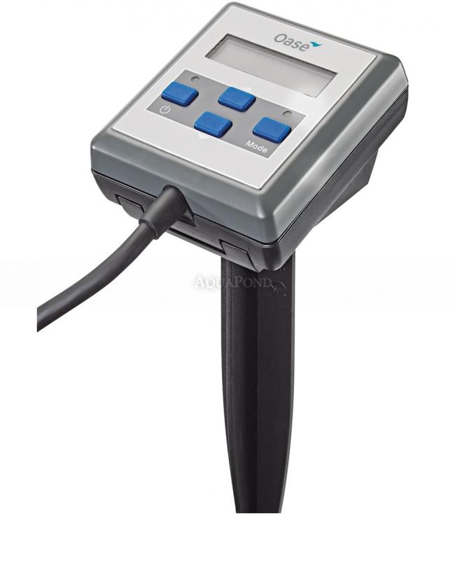 Cleveres Oase Control Steuergerät für Eco Expert Pumpen. Übersichtliches Ablesen durch beleuchtetes zweizeiliges Display. Robust und geschützt für den ganzjährigen Einsatz.