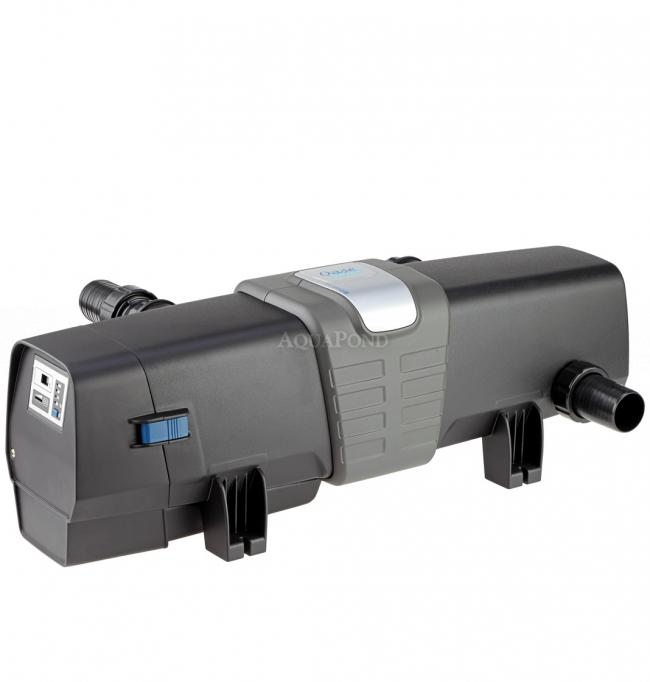Besonders hochwertiges UVC-Vorklärgerät Oase Bitron Eco 120 W aus schlagfestem Kunststoff mit patentierter Selbstreinigung, intelligenter Bypass-Technik und einzigartiger UVC-Lampe mit 50% längerer Lebensdauer.