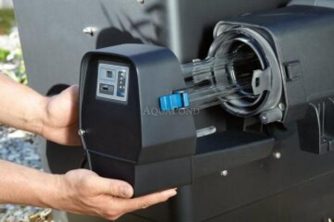 Besonders hochwertiges UVC-Vorklärgerät Oase Bitron Eco 180 W aus schlagfestem Kunststoff mit patentierter Selbstreinigung, intelligenter Bypass-Technik und einzigartiger UVC-Lampe mit 50% längerer Lebensdauer.